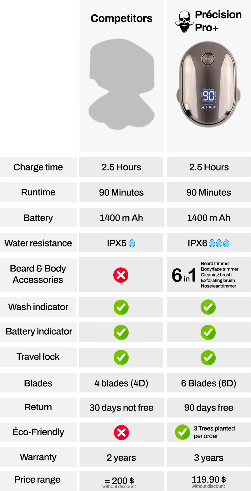 Say goodbye to dull blades, irritations and cuts. Introducing the GroomSkull® Precision Pro Electric Shaver, the crown jewel of electric shavers. If you dream of a hairless head in a few seconds, like at the Barber, your quest is over.