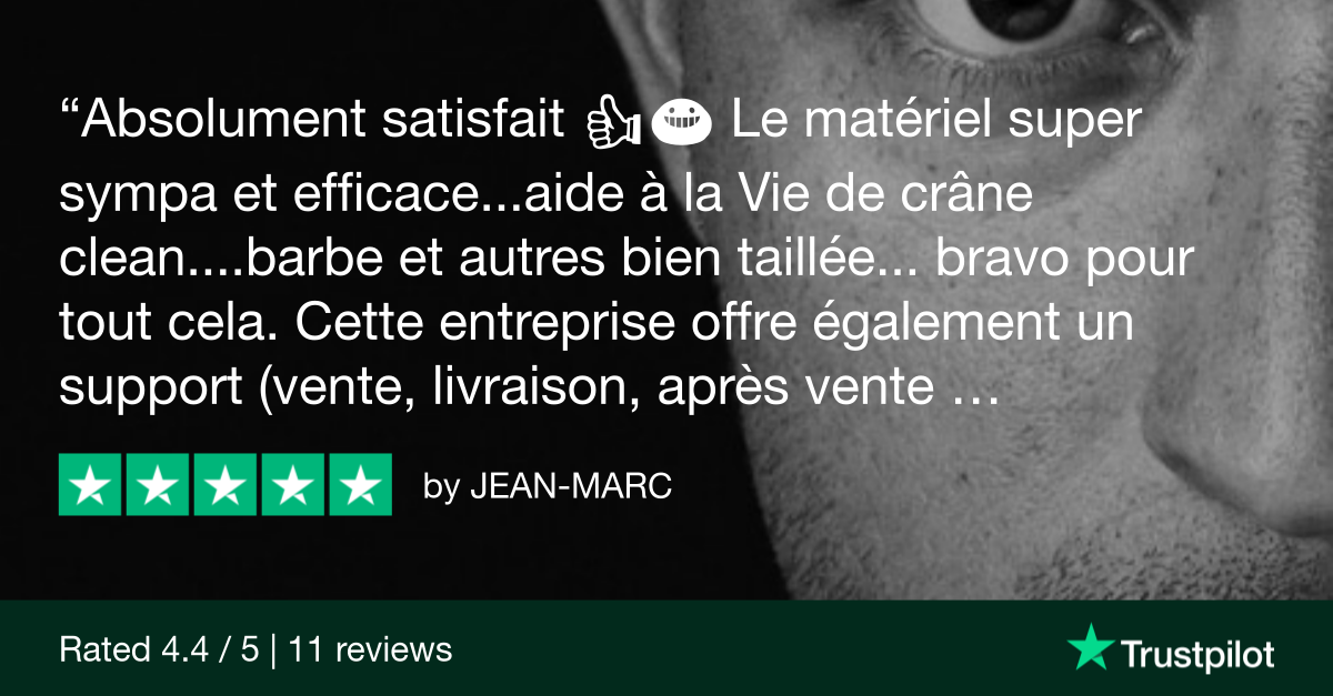 Lorsque vous choisissez GroomSkull®, vous choisissez également un service client exceptionnel. Nous sommes là pour répondre à toutes vos questions et préoccupations. Votre expérience avec GroomSkull® doit être aussi lisse que votre rasage.