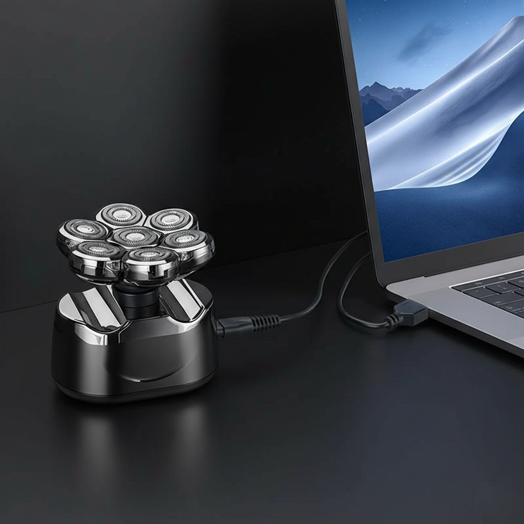 Laissez-moi vous présenter l'Alpha des tondeuses pour crâne. Le chef-d'œuvre de l'ingénierie, habillé dans un design audacieux pour une expérience de rasage sensationnelle.