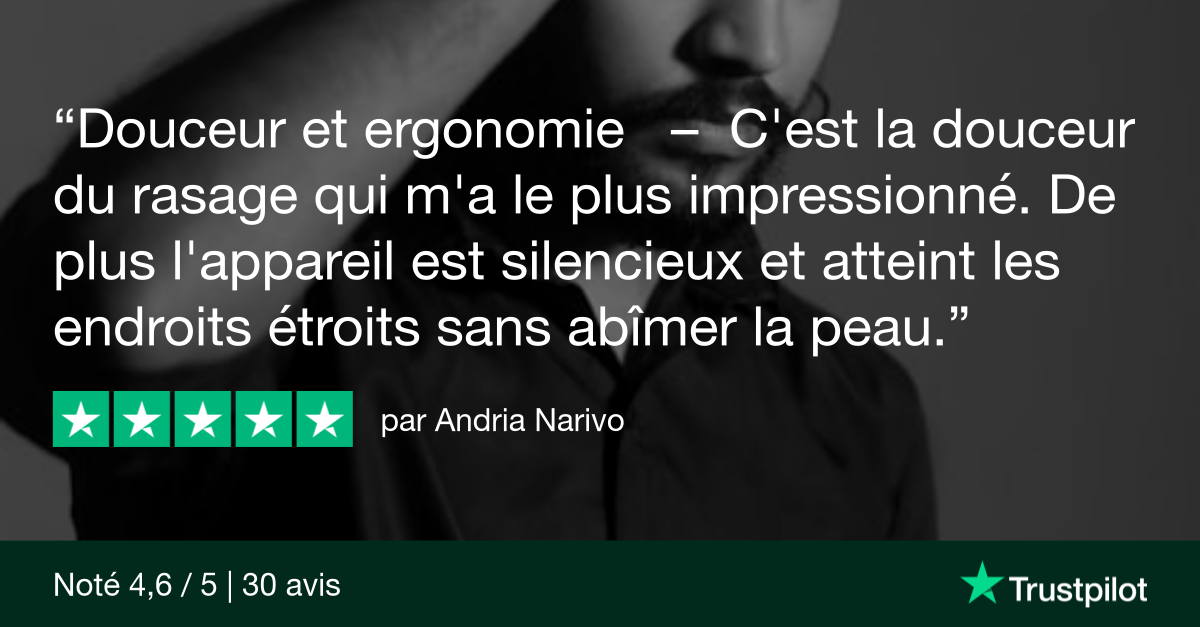 R : Ah, excellente question ! GroomSkull® ne coupe pas les coins. Avec ses 5 lames de qualité professionnelle et son design de pointe, il offre un rasage lisse et une confiance inégalée. C'est votre arme secrète pour un style irréprochable gràce à nos trois technologies SkinFlow™, SharpFlow™, Click&Clean™ et SkinCare™.