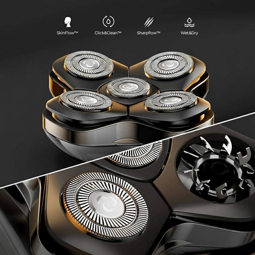 • Tête avec 5 lames SkinFlow™ Click&Clean™